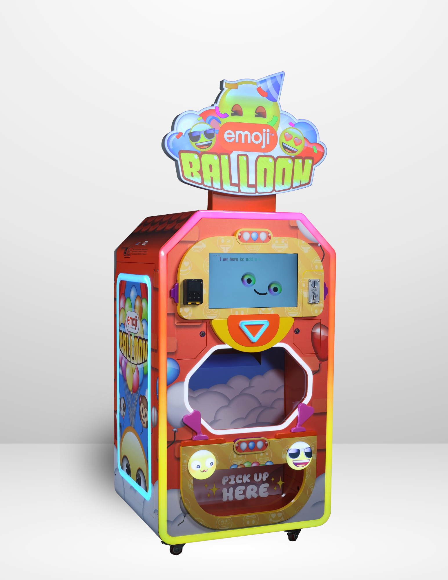 The emoji™ balloon is an interactive vending machine that creates fun, emoji-themed balloons in just 30 seconds. Featuring iconic emoji™ designs, vibrant LED lighting, and a robotic inflation process, it offers a mesmerizing experience. Each balloon includes a stick, making it a perfect keepsake. High capacity—nearly 200 balloons per refill!